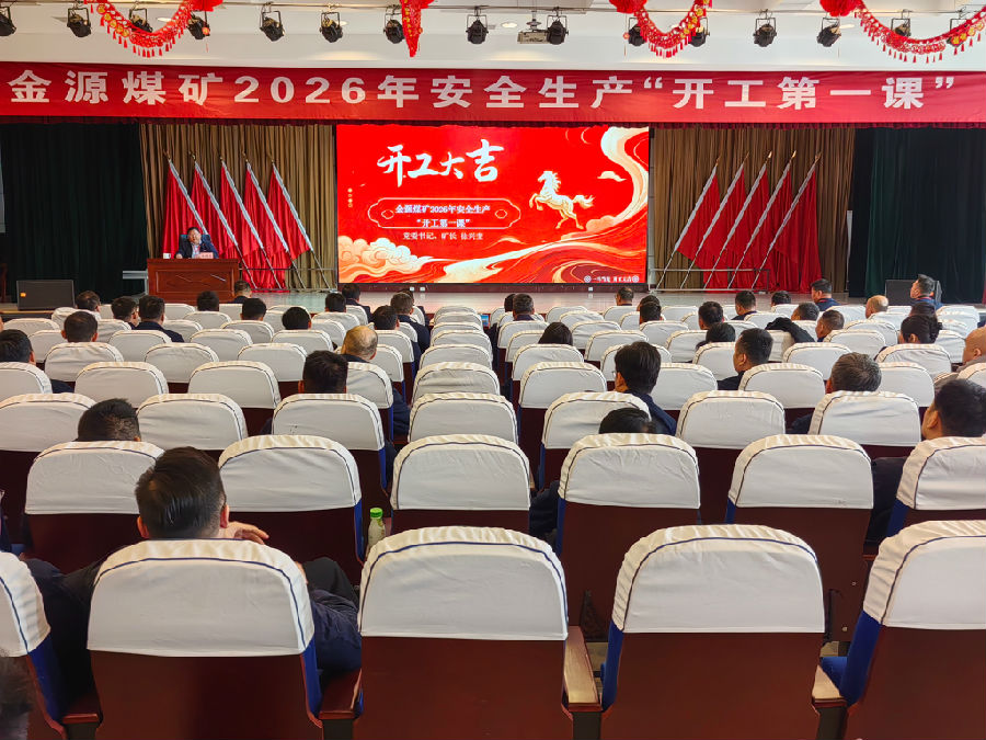 2月22日,金源煤矿组织开展2026年安全生产“开工第一课”,金源煤矿党委书记、矿长徐兴奎等班子成员,各科室、区队共计102人参加活动。